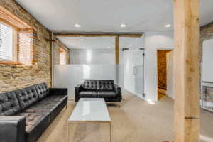 This luxury office suite in Godalming has its own well-designed kitchen and washroom facilities with in-built cupboards. The kitchen includes sink and fridge.